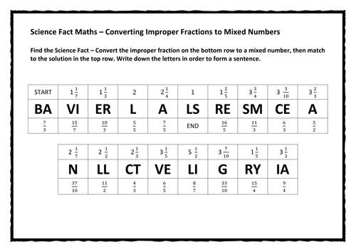 Science Fact Maths Converting Improper Fractions To Mixed Numbers 2 Teaching Resources