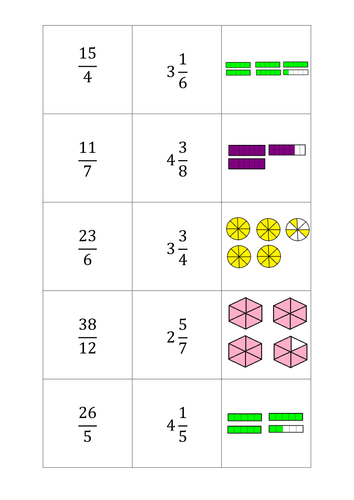 Improper Fractions Matching Task Teaching Resources